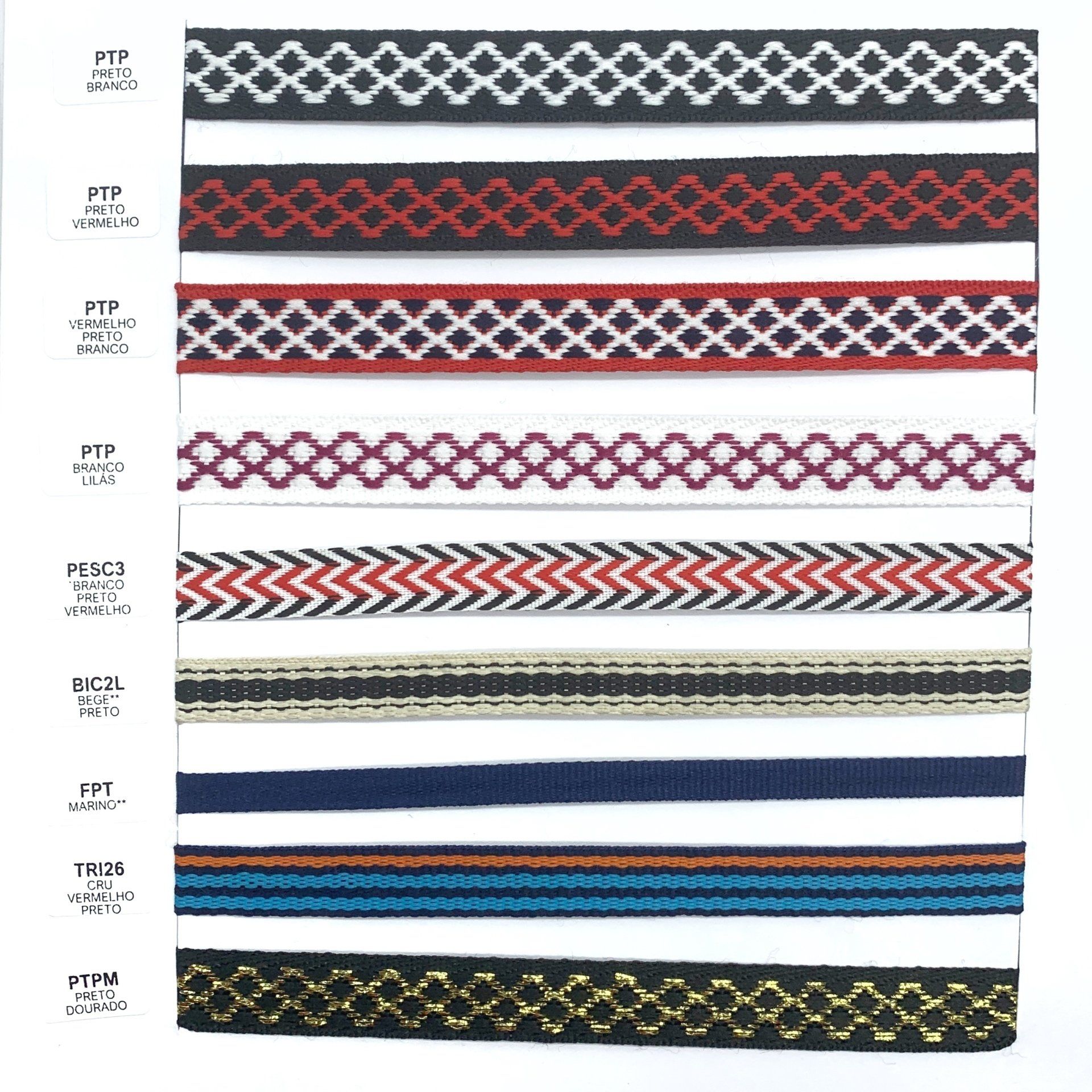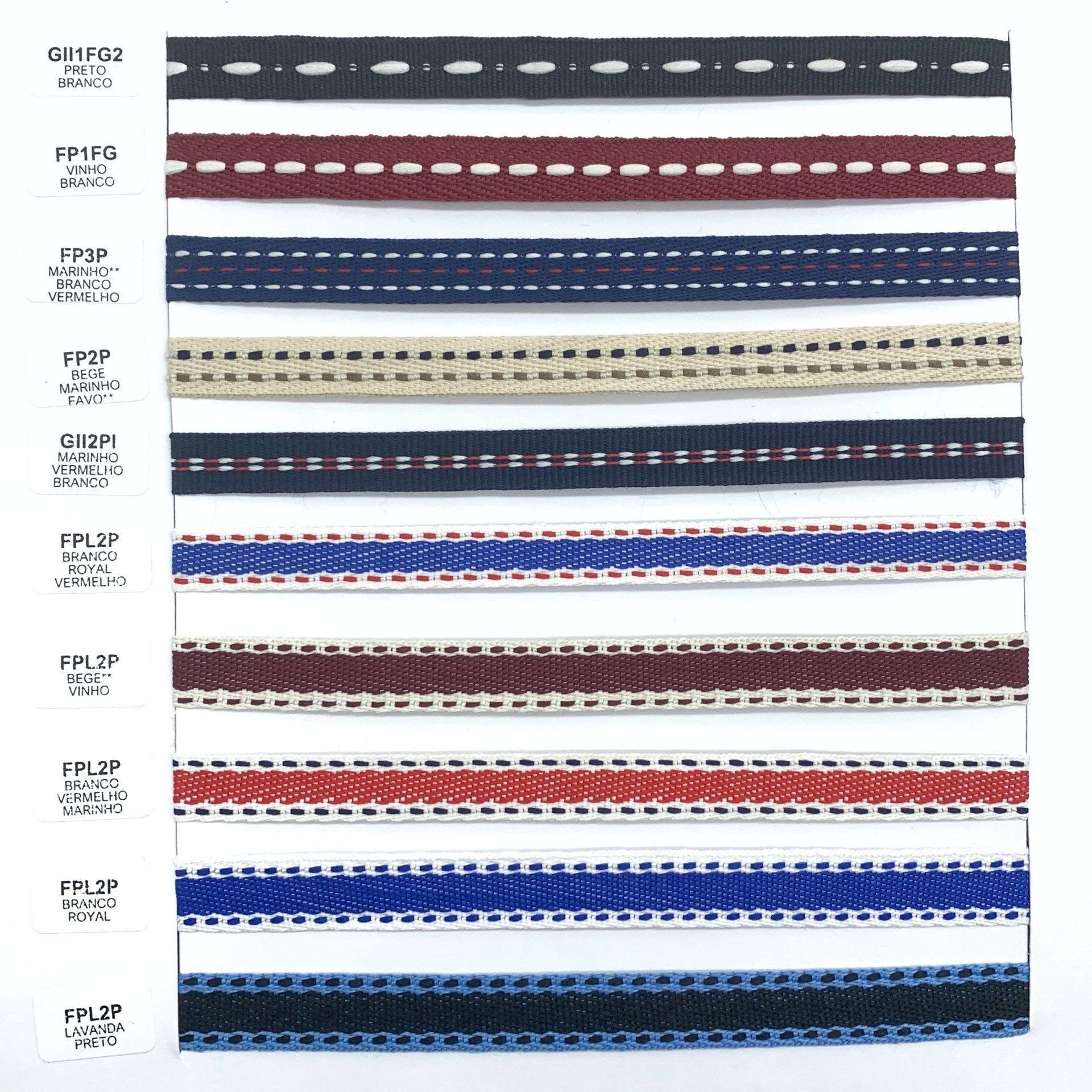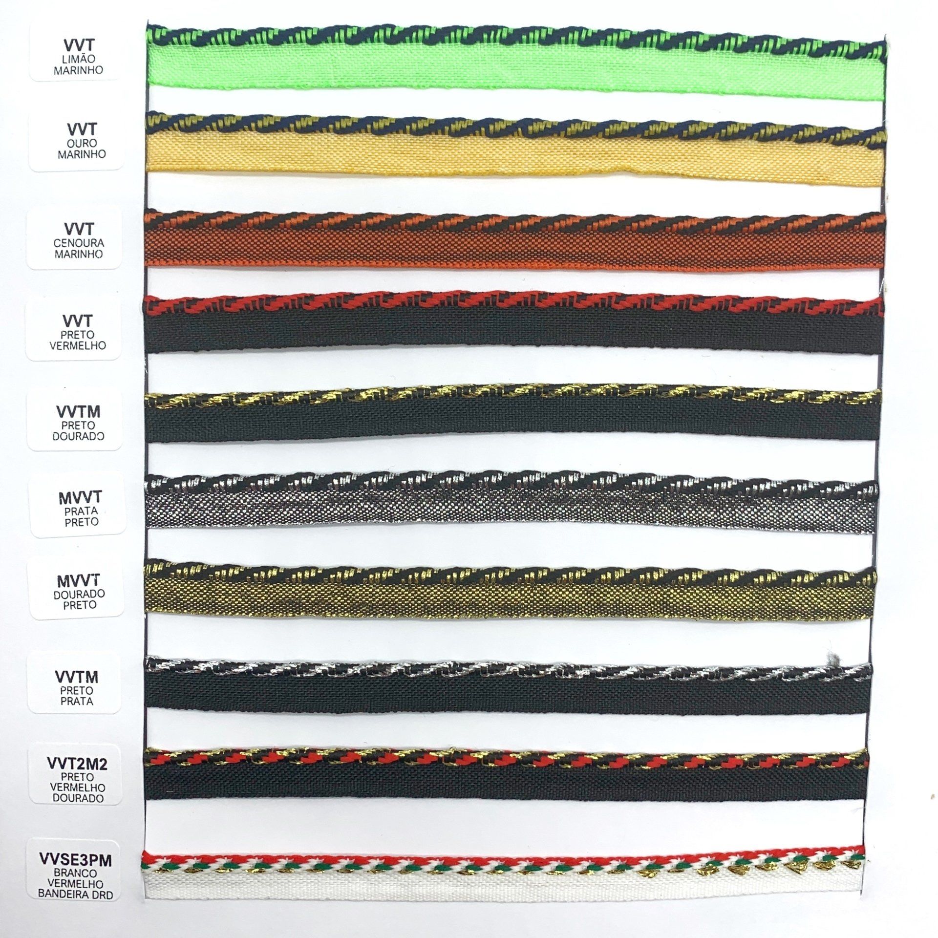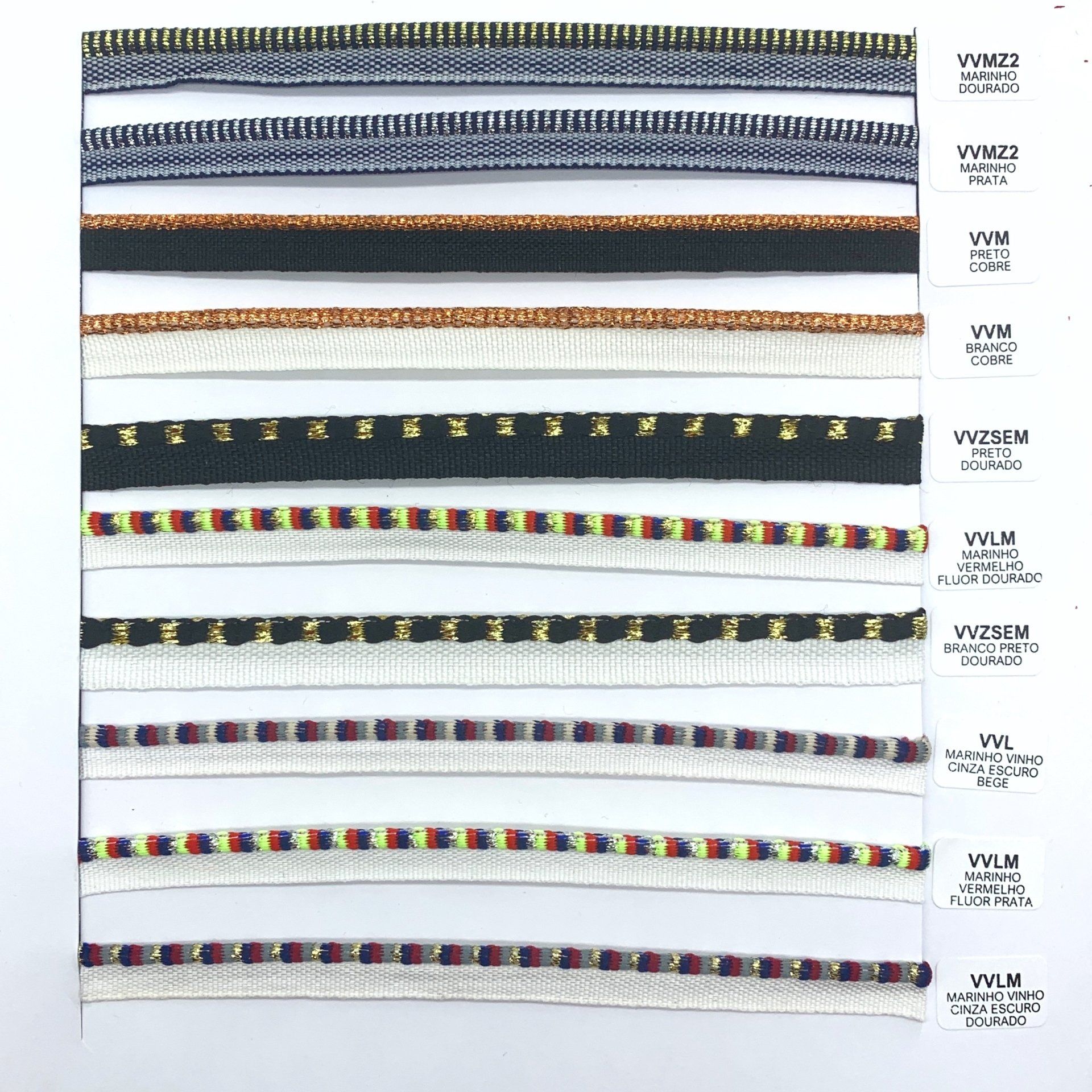 Confira o nosso mostruário de fitas. Nele você encontra nossos cadarços, vivos, galões e muito mais.
