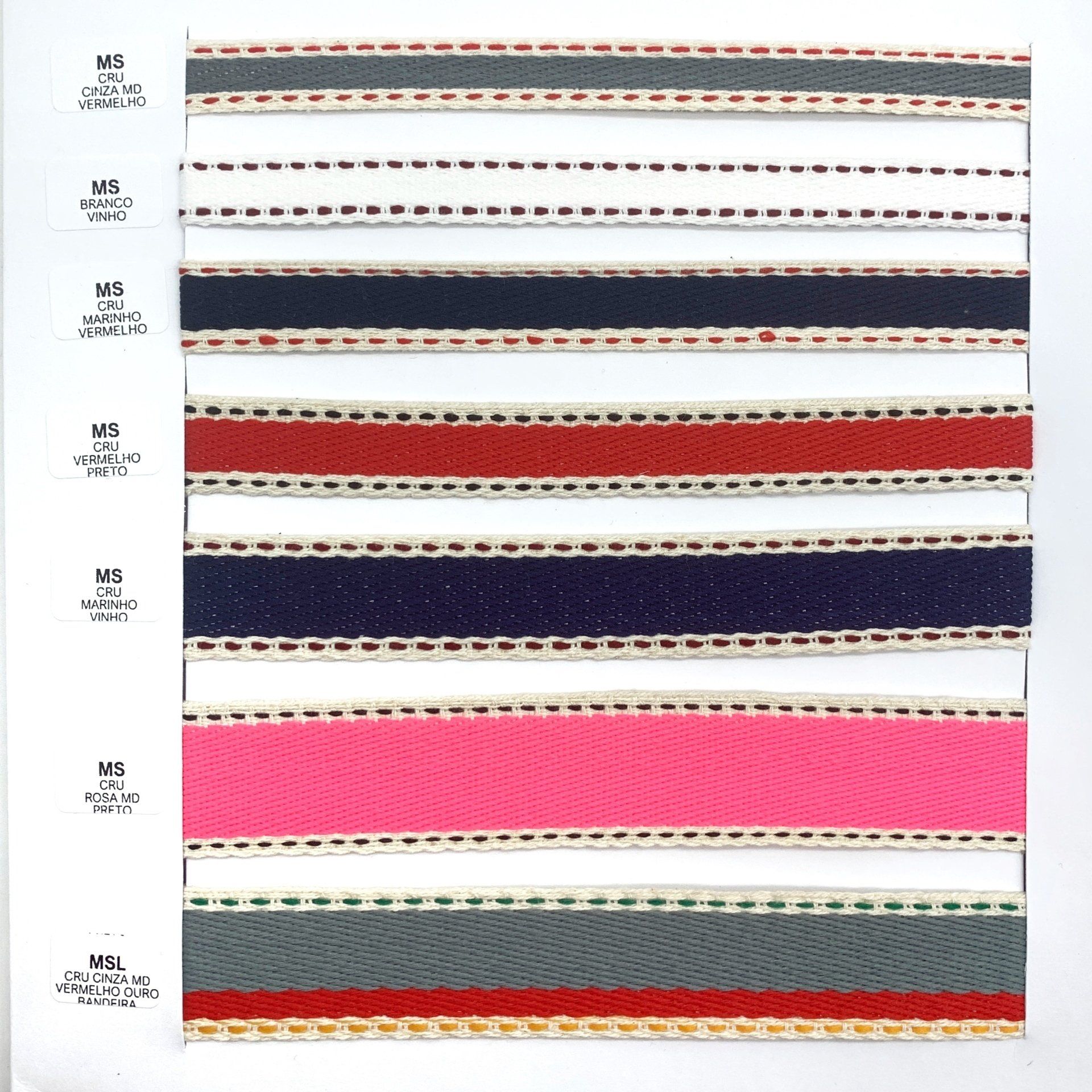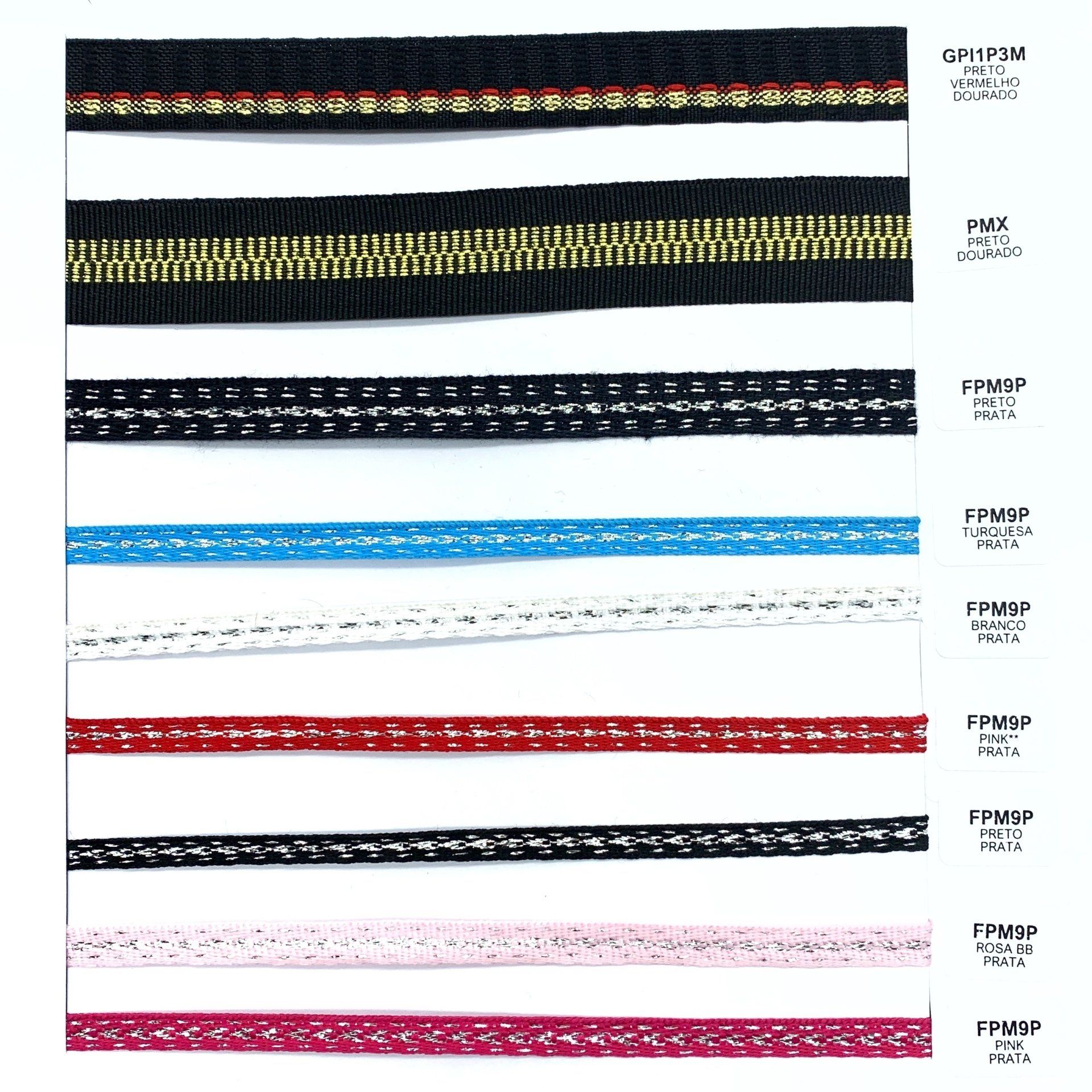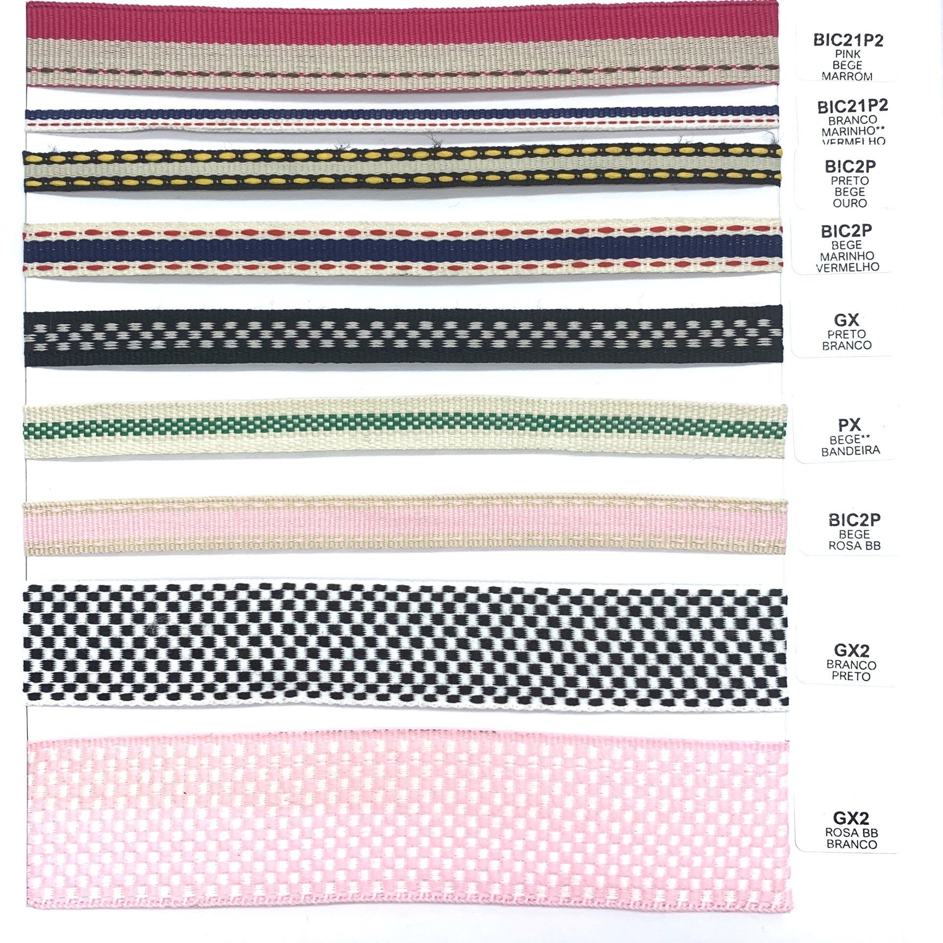 Confira o nosso mostruário de fitas. Nele você encontra nossos cadarços, vivos, galões e muito mais.