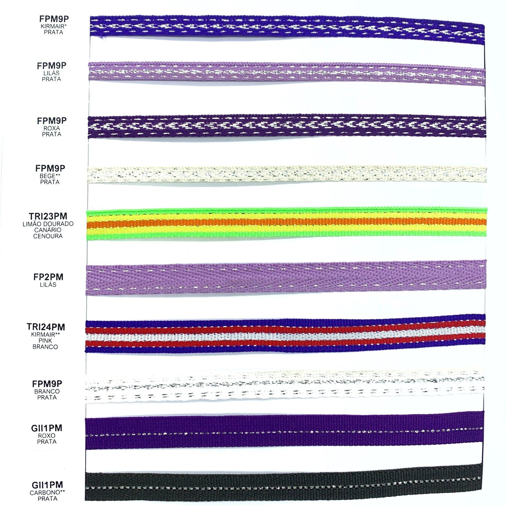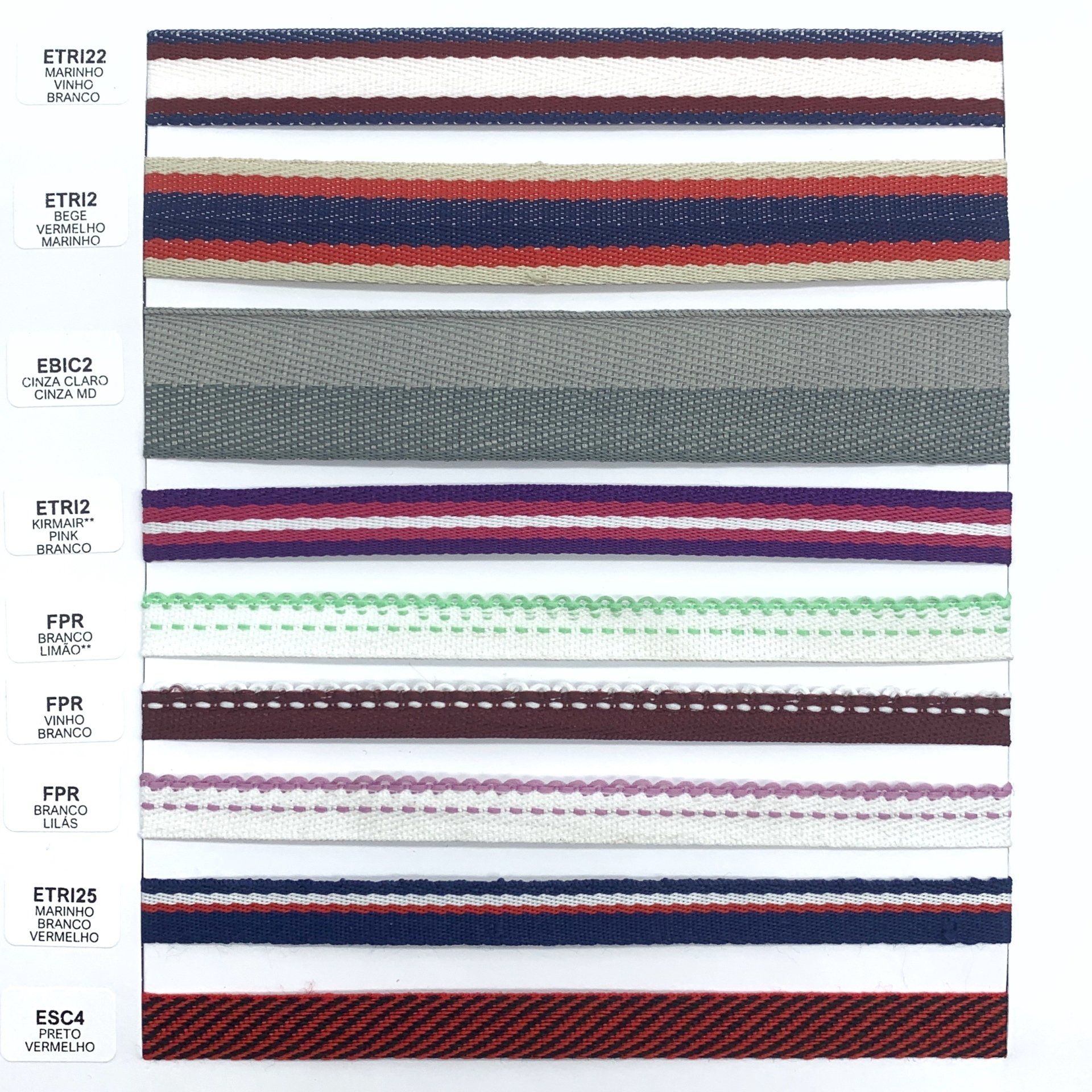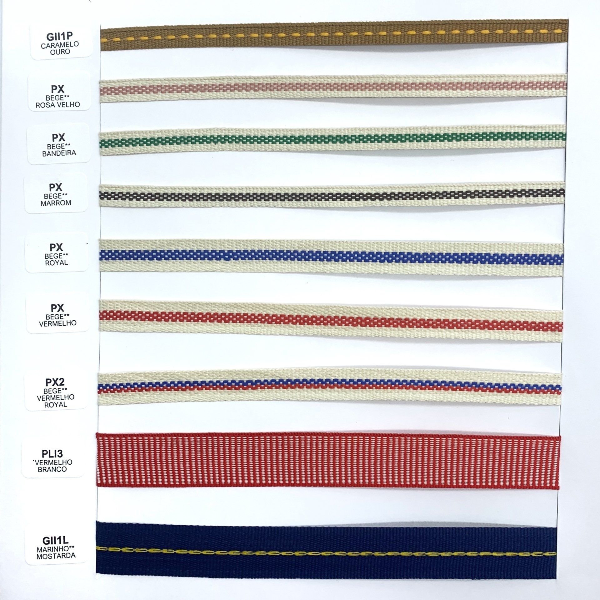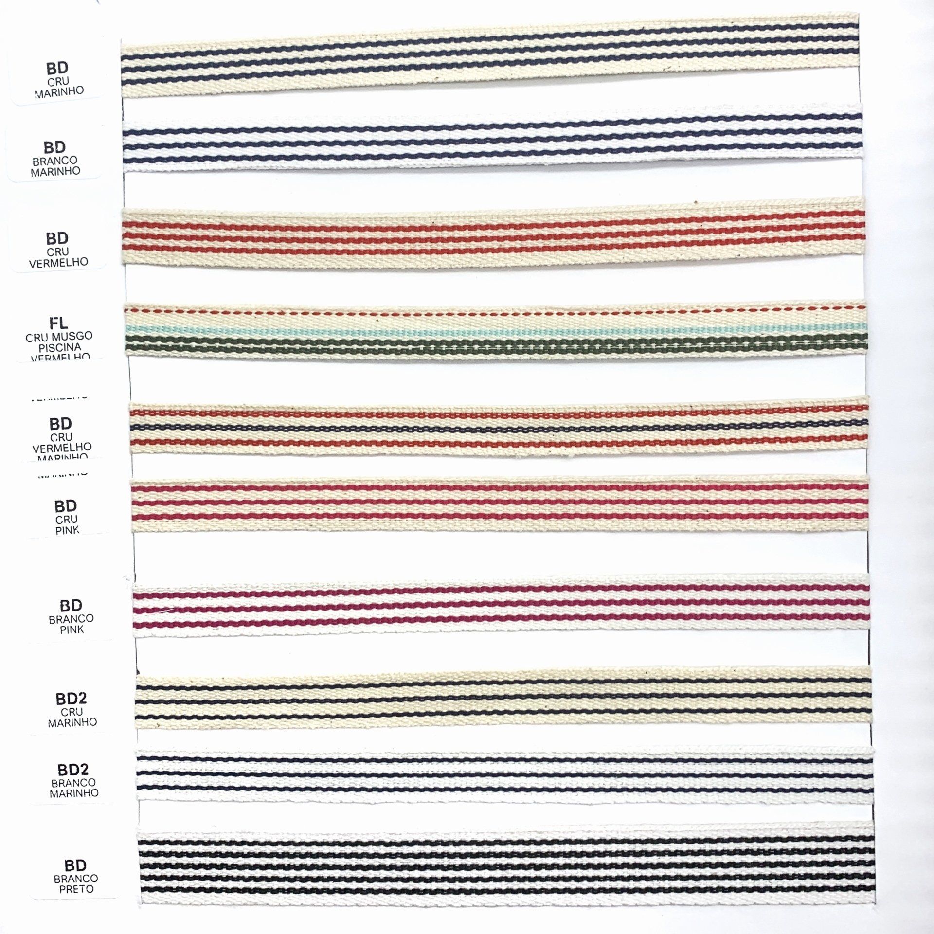 Confira o nosso mostruário de fitas. Nele você encontra nossos cadarços, vivos, galões e muito mais.